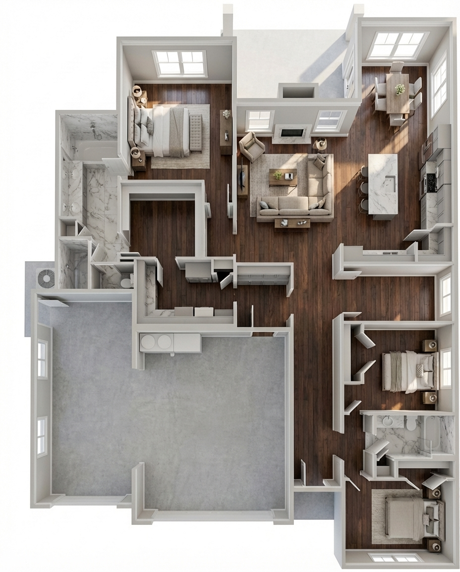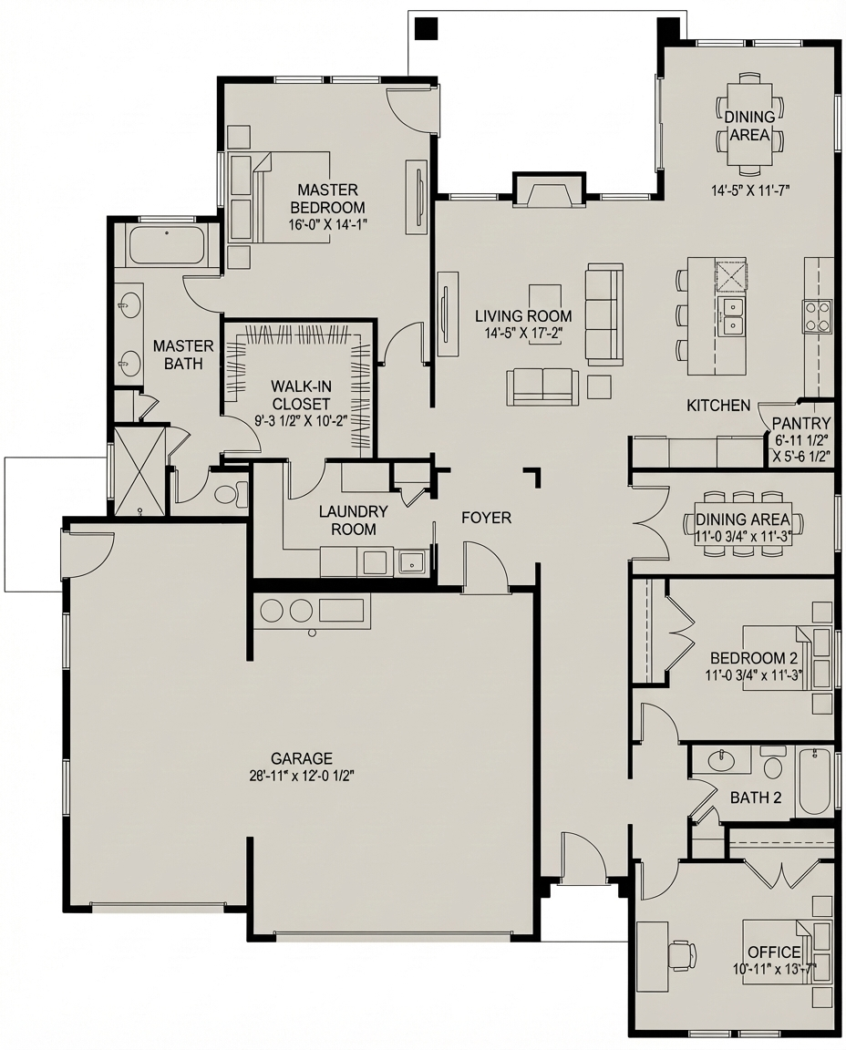 This charming designed single-story floor plan offers 3 bedrooms, 2 bathrooms, and a spacious 2-car garage, along with a dedicated boat garage for added flexibility and storage. The layout is designed for both comfort and function, creating an inviting flow between the main living areas while still providing privacy in the bedroom spaces. A craftsman-style exterior gives the home timeless curb appeal, featuring rich architectural character, attractive detailing, and a warm, welcoming presence. Ideal for homeowners who need practical space without sacrificing style, this plan combines everyday livability with the added convenience of extra garage storage for recreational needs.